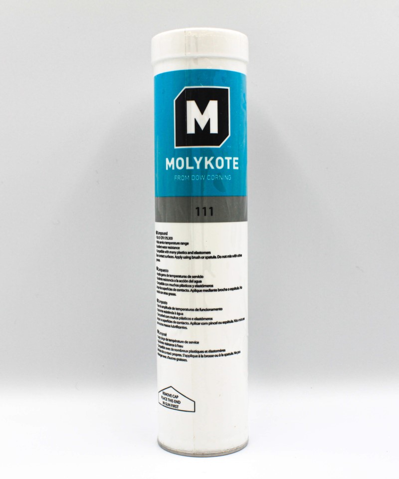 Molykote® 111 Compound. Offers good resistance to most chemicals, excellent water resistance, low vapor pressure and low volatility over a wide temperature range. Molykote® 111 Compound can be used to lubricate most non-silicone O-rings and gaskets.
